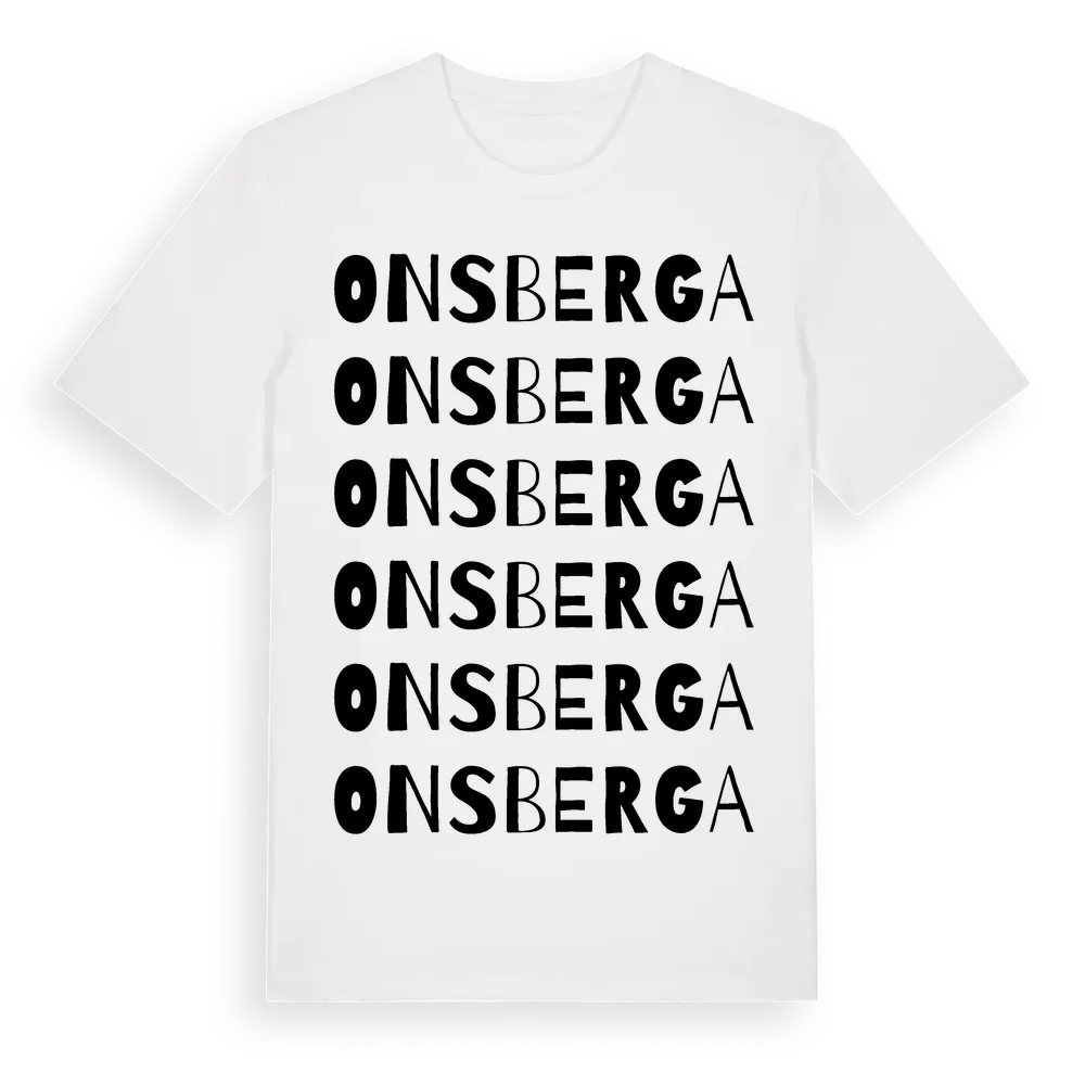 Onsberga ordlek t-shirt är inspirerad av byn Onsberga i Södermanlands län, Sverige. Tröjan är designad för dig som har en speciell koppling till platsen – oavsett om du bor här, har rötterna här eller bara älskar Onsberga.