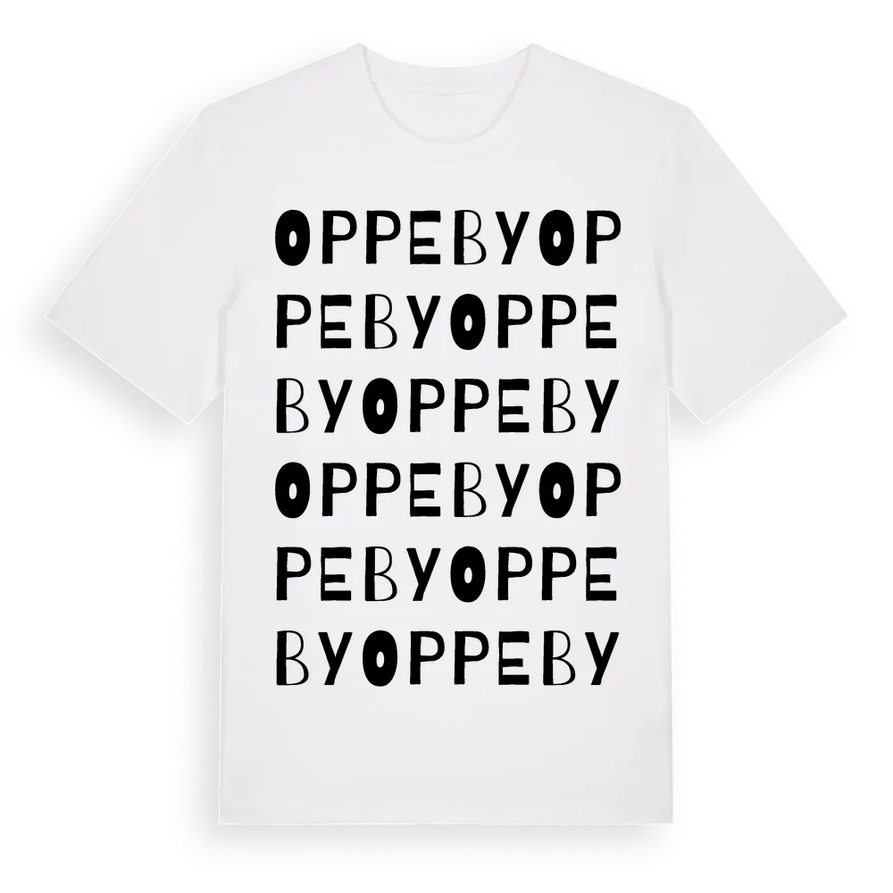 Oppeby ordlek t-shirt är inspirerad av Oppeby i Södermanlands län, Sverige. Tröjan är designad för dig som har en speciell koppling till platsen – oavsett om du bor här, har rötterna här eller bara älskar Oppeby.