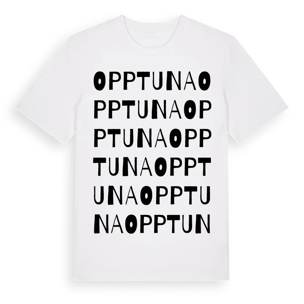 Opptuna ordlek t-shirt är inspirerad av byn Opptuna i Södermanlands län, Sverige. Tröjan är designad för dig som har en speciell koppling till platsen – oavsett om du bor här, har rötterna här eller bara älskar Opptuna.