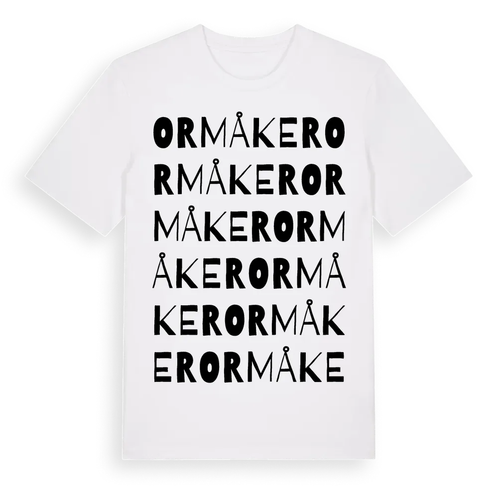 Ormåker ordlek t-shirt är inspirerad av Ormåker i Södermanlands län, Sverige. Tröjan är designad för dig som har en speciell koppling till platsen – oavsett om du bor här, har rötterna här eller bara älskar Ormåker.