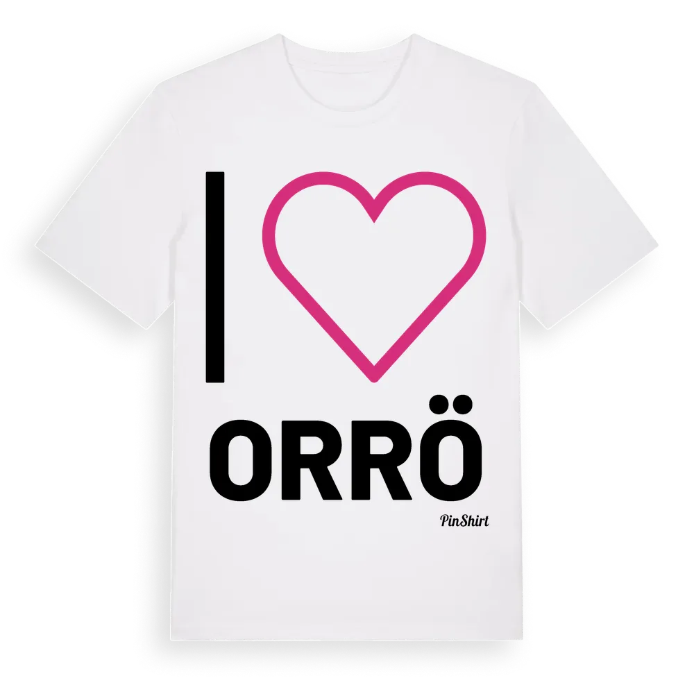Det klassiska "I ❤ Orrö"-motivet i stort format som täcker hela bröstet. För dig som vill visa kärleken till Orrö på riktigt. Premium bomull, unisex – från stadsdelen Orrö i Södermanlands län.