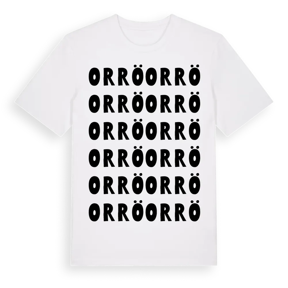Orrö ordlek t-shirt är inspirerad av stadsdelen Orrö i Södermanlands län, Sverige. Tröjan är designad för dig som har en speciell koppling till platsen – oavsett om du bor här, har rötterna här eller bara älskar Orrö.