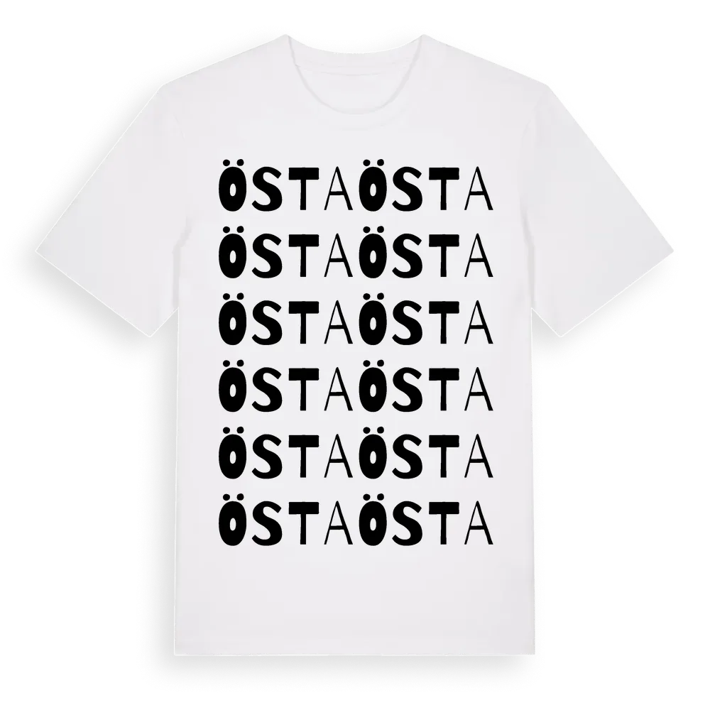 En ordlek byggd på Östas namn. Subtilt och klurig – ett motiv som bara de som verkligen känner platsen fullt ut förstår. Premium bomull, unisex – från byn Östa i Södermanlands län.