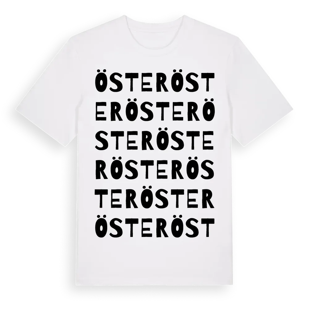 Öster ordlek t-shirt är inspirerad av stadsdelen Öster i Södermanlands län, Sverige. Tröjan är designad för dig som har en speciell koppling till platsen – oavsett om du bor här, har rötterna här eller bara älskar Öster.