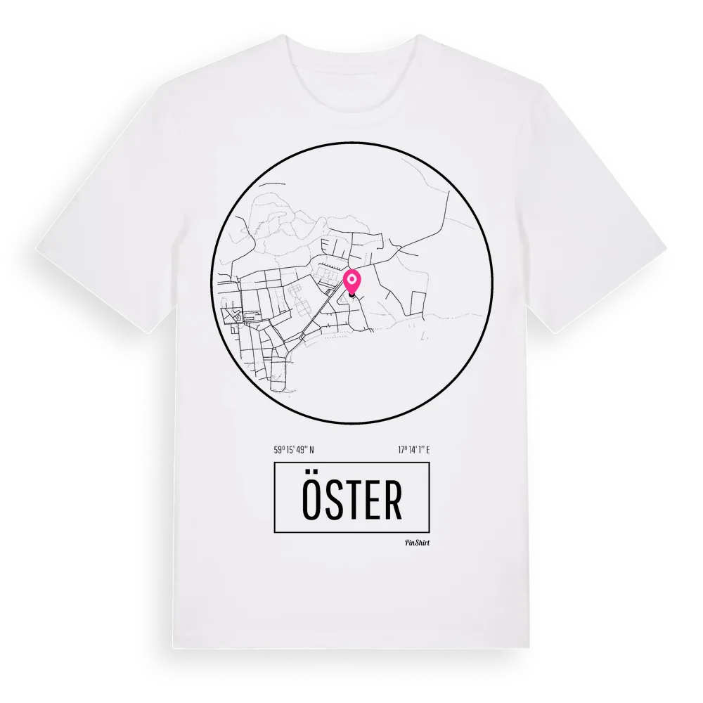 Ett rent, runt tryck med Östers namn. Minimalistiskt och stilrent – perfekt för den som känner platsen utan att skrika det. Premium bomull, unisex – från stadsdelen Öster i Södermanlands län.