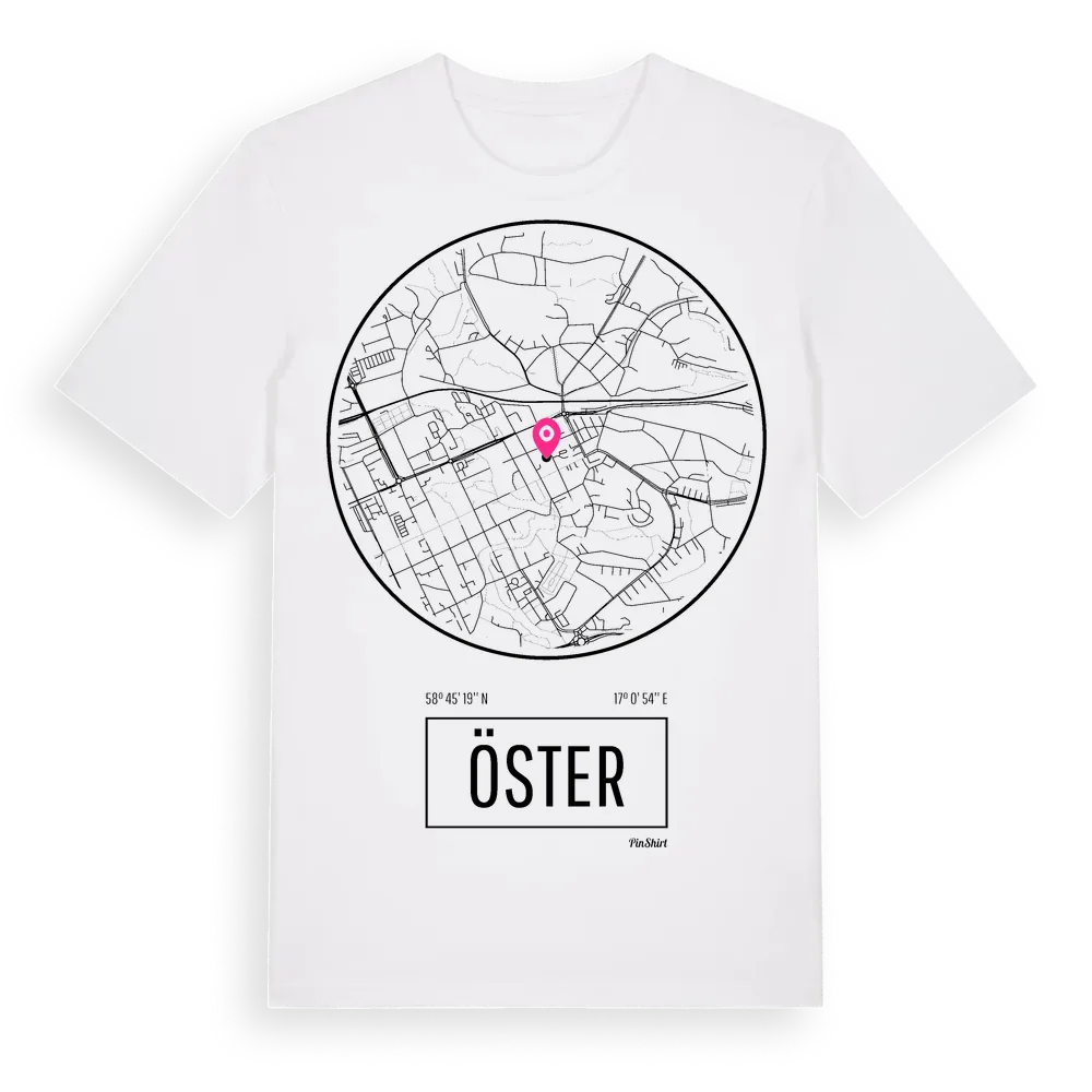 Ett rent, runt tryck med Östers namn. Minimalistiskt och stilrent – perfekt för den som känner platsen utan att skrika det. Premium bomull, unisex – från stadsdelen Öster i Södermanlands län.