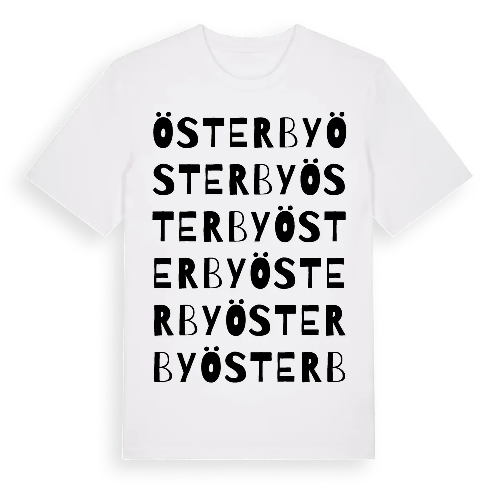 Österby ordlek t-shirt är inspirerad av Österby i Södermanlands län, Sverige. Tröjan är designad för dig som har en speciell koppling till platsen – oavsett om du bor här, har rötterna här eller bara älskar Österby.