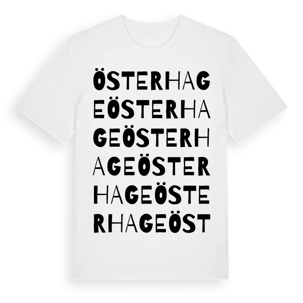 Österhage ordlek t-shirt är inspirerad av Österhage i Södermanlands län, Sverige. Tröjan är designad för dig som har en speciell koppling till platsen – oavsett om du bor här, har rötterna här eller bara älskar Österhage.