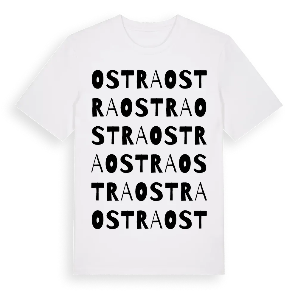 En ordlek byggd på Ostras namn. Subtilt och klurig – ett motiv som bara de som verkligen känner platsen fullt ut förstår. Premium bomull, unisex – från byn Ostra i Södermanlands län.