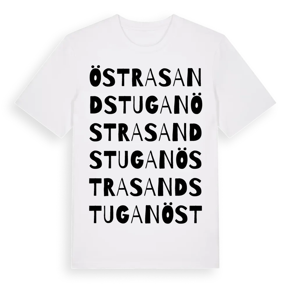 Östra Sandstugan ordlek t-shirt är inspirerad av Östra Sandstugan i Södermanlands län, Sverige. Tröjan är designad för dig som har en speciell koppling till platsen – oavsett om du bor här, har rötterna här eller bara älskar Östra Sandstugan.