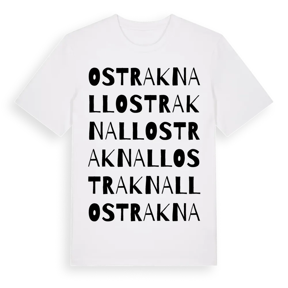 Ostraknall ordlek t-shirt är inspirerad av byn Ostraknall i Södermanlands län, Sverige. Tröjan är designad för dig som har en speciell koppling till platsen – oavsett om du bor här, har rötterna här eller bara älskar Ostraknall.