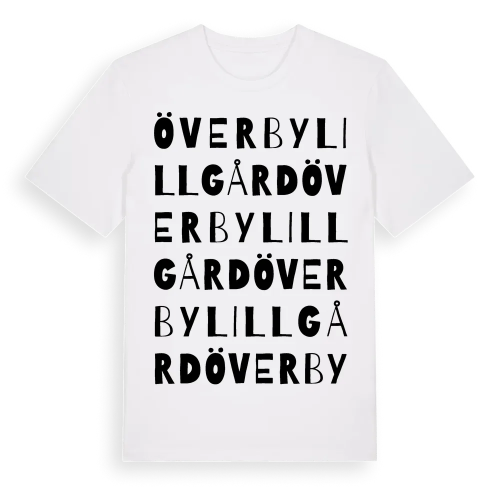 Överby Lillgård ordlek t-shirt är inspirerad av Överby Lillgård i Södermanlands län, Sverige. Tröjan är designad för dig som har en speciell koppling till platsen – oavsett om du bor här, har rötterna här eller bara älskar Överby Lillgård.