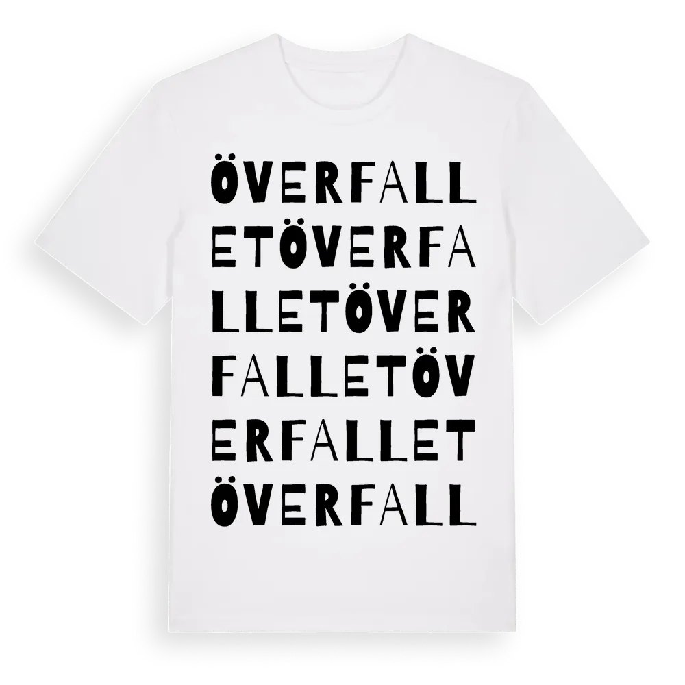 Överfallet ordlek t-shirt är inspirerad av Överfallet i Södermanlands län, Sverige. Tröjan är designad för dig som har en speciell koppling till platsen – oavsett om du bor här, har rötterna här eller bara älskar Överfallet.