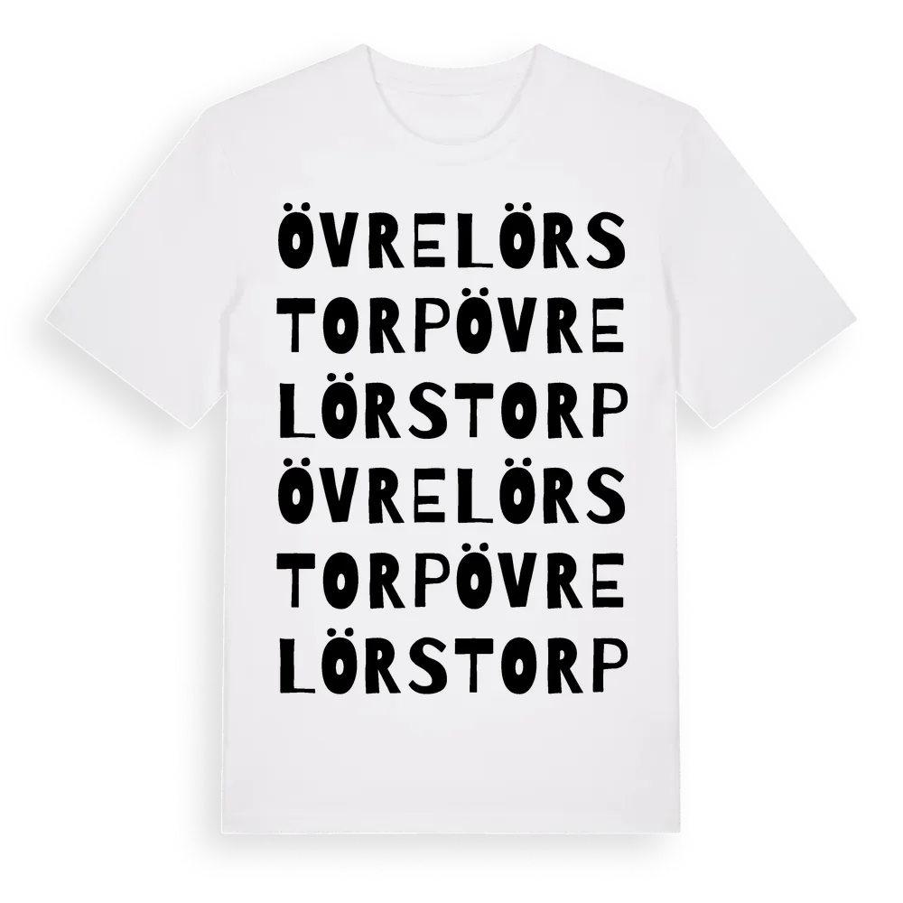 Övre Lörstorp ordlek t-shirt är inspirerad av Övre Lörstorp i Södermanlands län, Sverige. Tröjan är designad för dig som har en speciell koppling till platsen – oavsett om du bor här, har rötterna här eller bara älskar Övre Lörstorp.