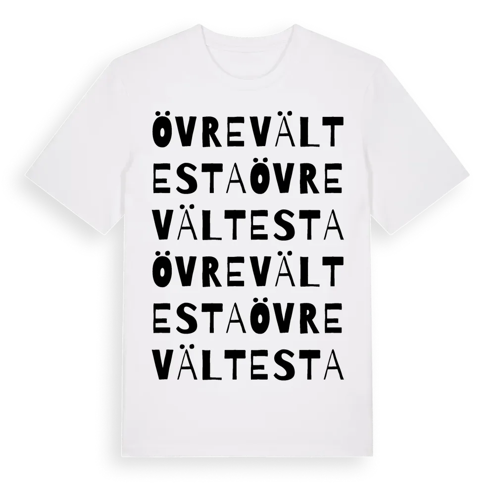 Övre Vältesta ordlek t-shirt är inspirerad av byn Övre Vältesta i Södermanlands län, Sverige. Tröjan är designad för dig som har en speciell koppling till platsen – oavsett om du bor här, har rötterna här eller bara älskar Övre Vältesta.