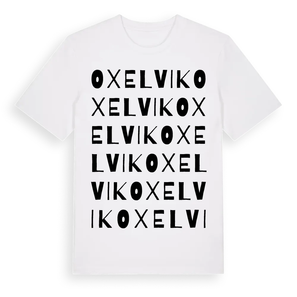 Oxelvik ordlek t-shirt är inspirerad av Oxelvik i Södermanlands län, Sverige. Tröjan är designad för dig som har en speciell koppling till platsen – oavsett om du bor här, har rötterna här eller bara älskar Oxelvik.