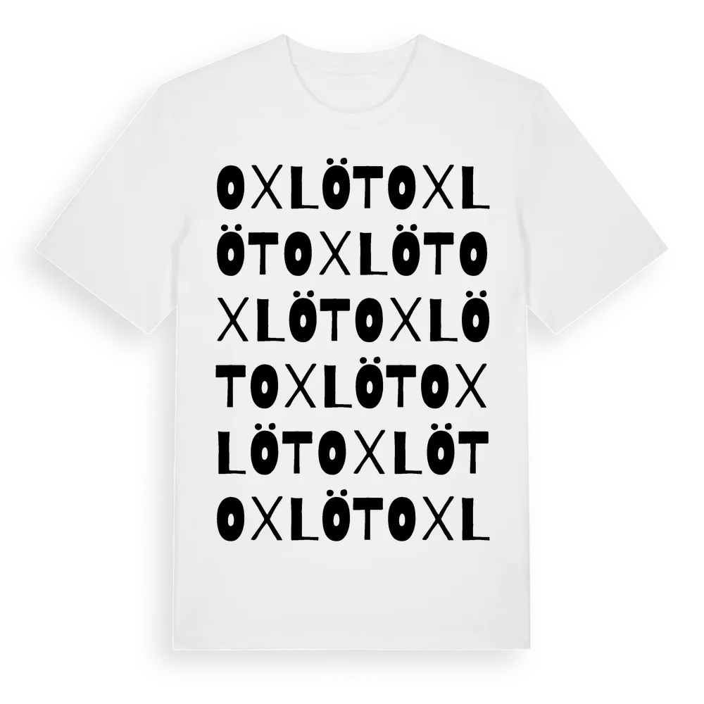 Oxlöt ordlek t-shirt är inspirerad av byn Oxlöt i Södermanlands län, Sverige. Tröjan är designad för dig som har en speciell koppling till platsen – oavsett om du bor här, har rötterna här eller bara älskar Oxlöt.