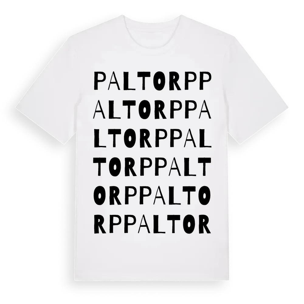 Paltorp ordlek t-shirt är inspirerad av Paltorp i Södermanlands län, Sverige. Tröjan är designad för dig som har en speciell koppling till platsen – oavsett om du bor här, har rötterna här eller bara älskar Paltorp.