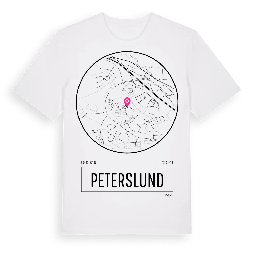 Ett rent, runt tryck med Peterslunds namn. Minimalistiskt och stilrent – perfekt för den som känner platsen utan att skrika det. Premium bomull, unisex – från stadsdelen Peterslund i Södermanlands län.