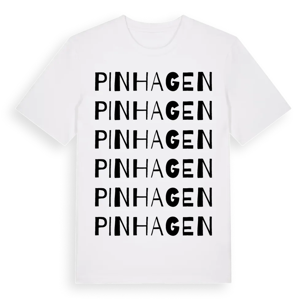En ordlek byggd på Pinhagens namn. Subtilt och klurig – ett motiv som bara de som verkligen känner platsen fullt ut förstår. Premium bomull, unisex – från Pinhagen i Södermanlands län.