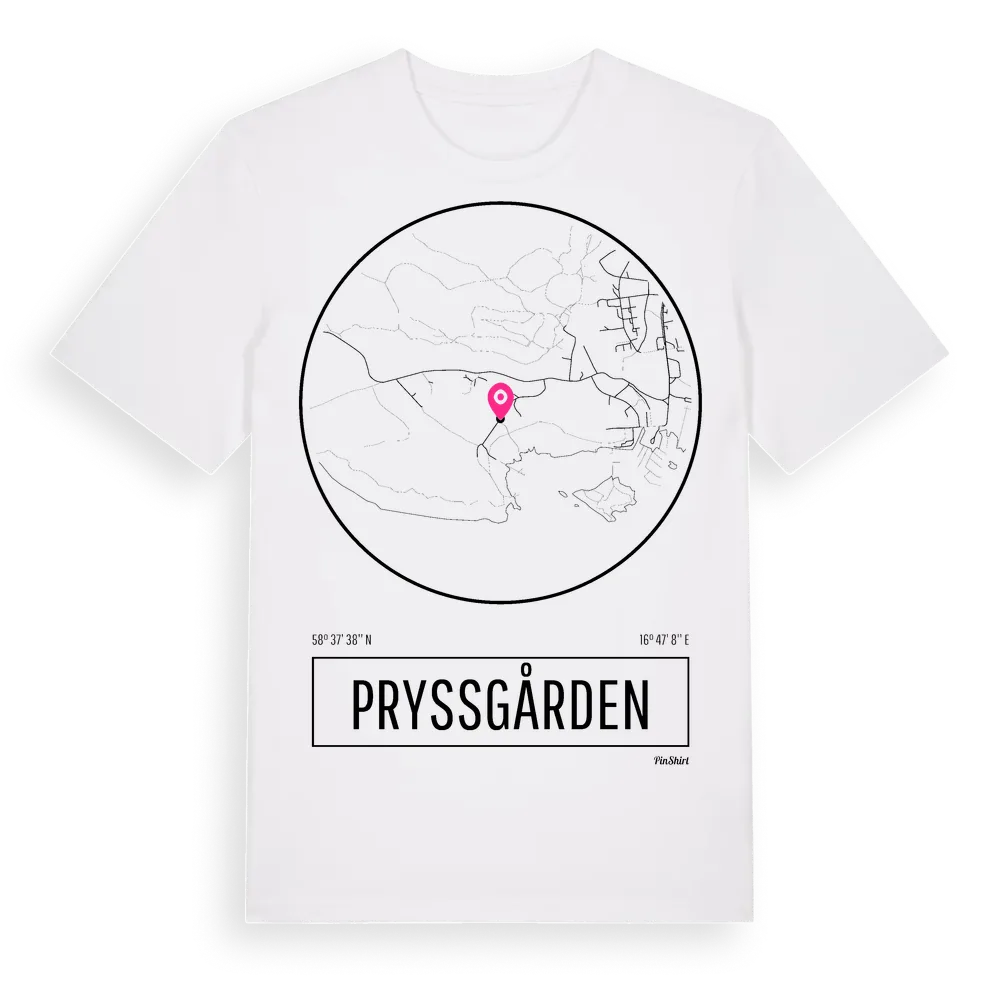 Pryssgården t-shirt är inspirerad av stadsdelen Pryssgården i Södermanlands län, Sverige. Tröjan är designad för dig som har en speciell koppling till platsen – oavsett om du bor här, har rötterna här eller bara älskar Pryssgården.