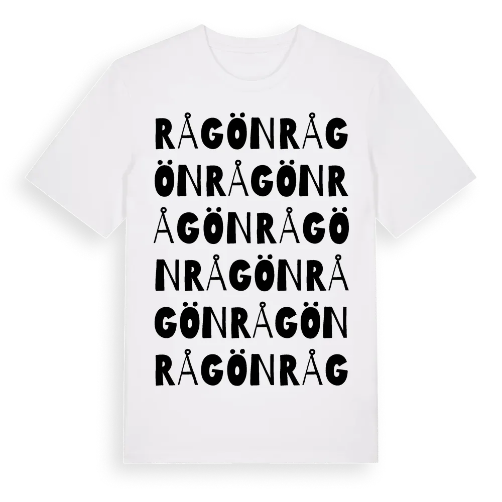 Rågön ordlek t-shirt är inspirerad av ön Rågön i Södermanlands län, Sverige. Tröjan är designad för dig som har en speciell koppling till platsen – oavsett om du bor här, har rötterna här eller bara älskar Rågön.