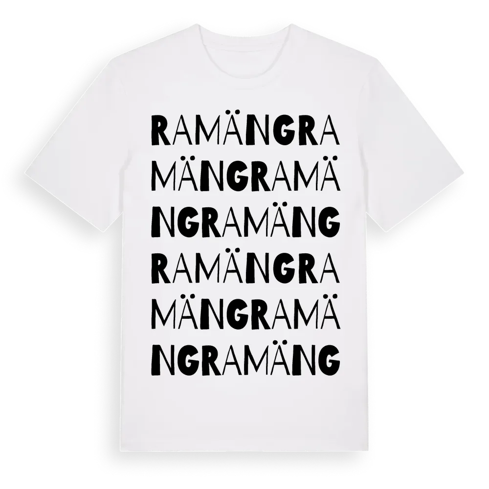 En ordlek byggd på Ramängs namn. Subtilt och klurig – ett motiv som bara de som verkligen känner platsen fullt ut förstår. Premium bomull, unisex – från Ramäng i Södermanlands län.