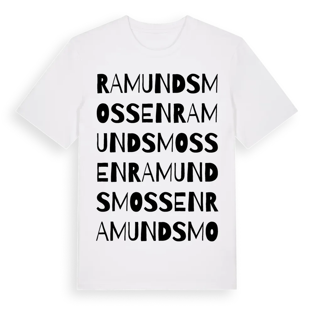 Ramundsmossen ordlek t-shirt är inspirerad av Ramundsmossen i Södermanlands län, Sverige. Tröjan är designad för dig som har en speciell koppling till platsen – oavsett om du bor här, har rötterna här eller bara älskar Ramundsmossen.