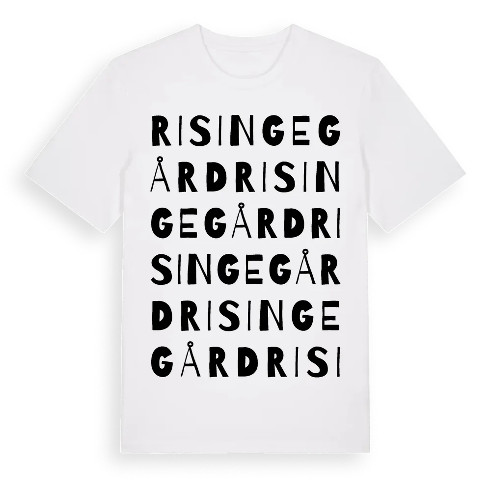 Risinge Gård ordlek t-shirt är inspirerad av Risinge Gård i Södermanlands län, Sverige. Tröjan är designad för dig som har en speciell koppling till platsen – oavsett om du bor här, har rötterna här eller bara älskar Risinge Gård.