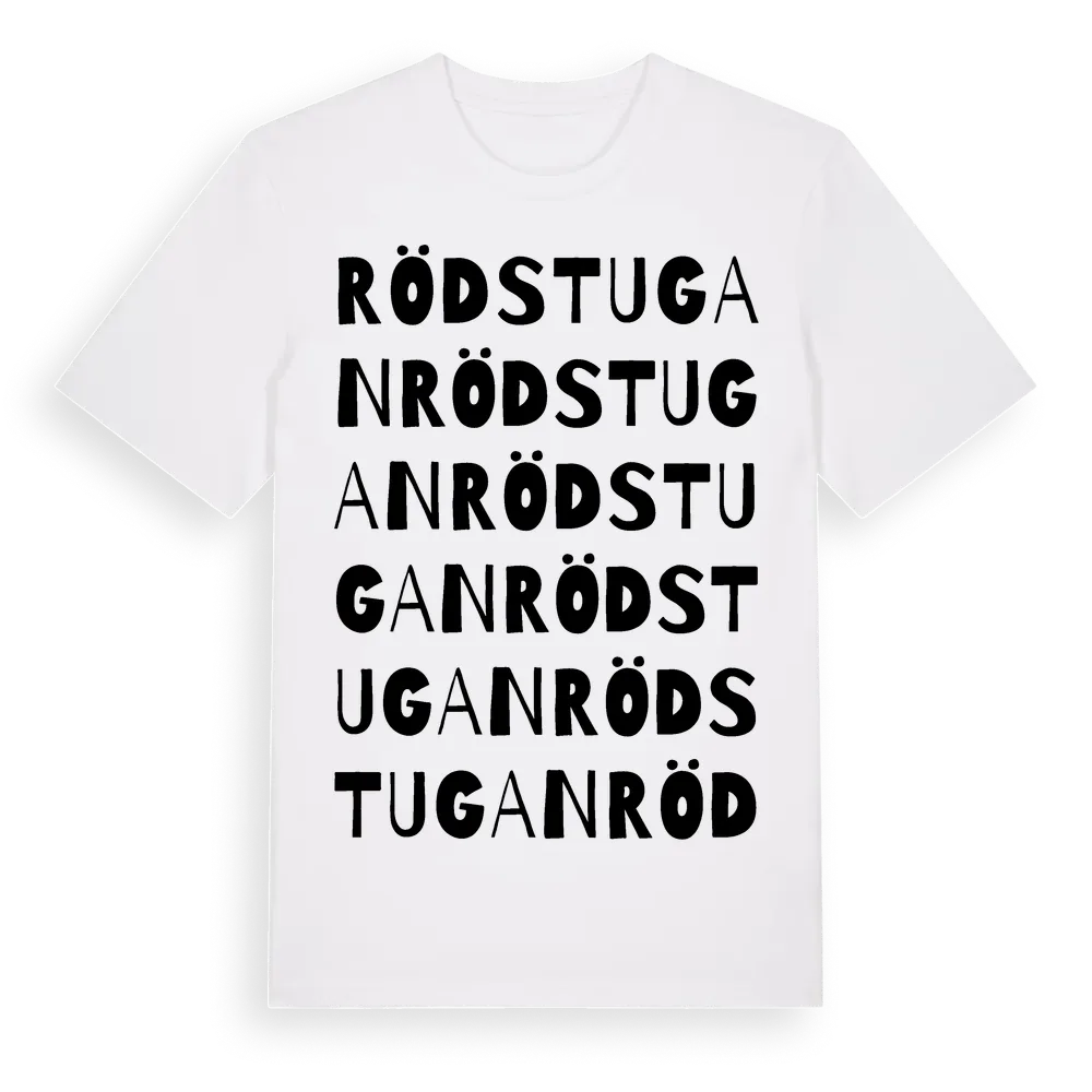 Rödstugan ordlek t-shirt är inspirerad av Rödstugan i Södermanlands län, Sverige. Tröjan är designad för dig som har en speciell koppling till platsen – oavsett om du bor här, har rötterna här eller bara älskar Rödstugan.