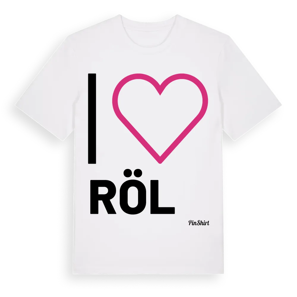 Det klassiska "I ❤ Röl"-motivet i stort format som täcker hela bröstet. För dig som vill visa kärleken till Röl på riktigt. Premium bomull, unisex – från Röl i Södermanlands län.