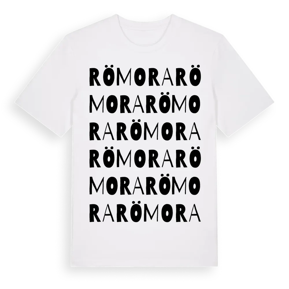 Römora ordlek t-shirt är inspirerad av byn Römora i Södermanlands län, Sverige. Tröjan är designad för dig som har en speciell koppling till platsen – oavsett om du bor här, har rötterna här eller bara älskar Römora.