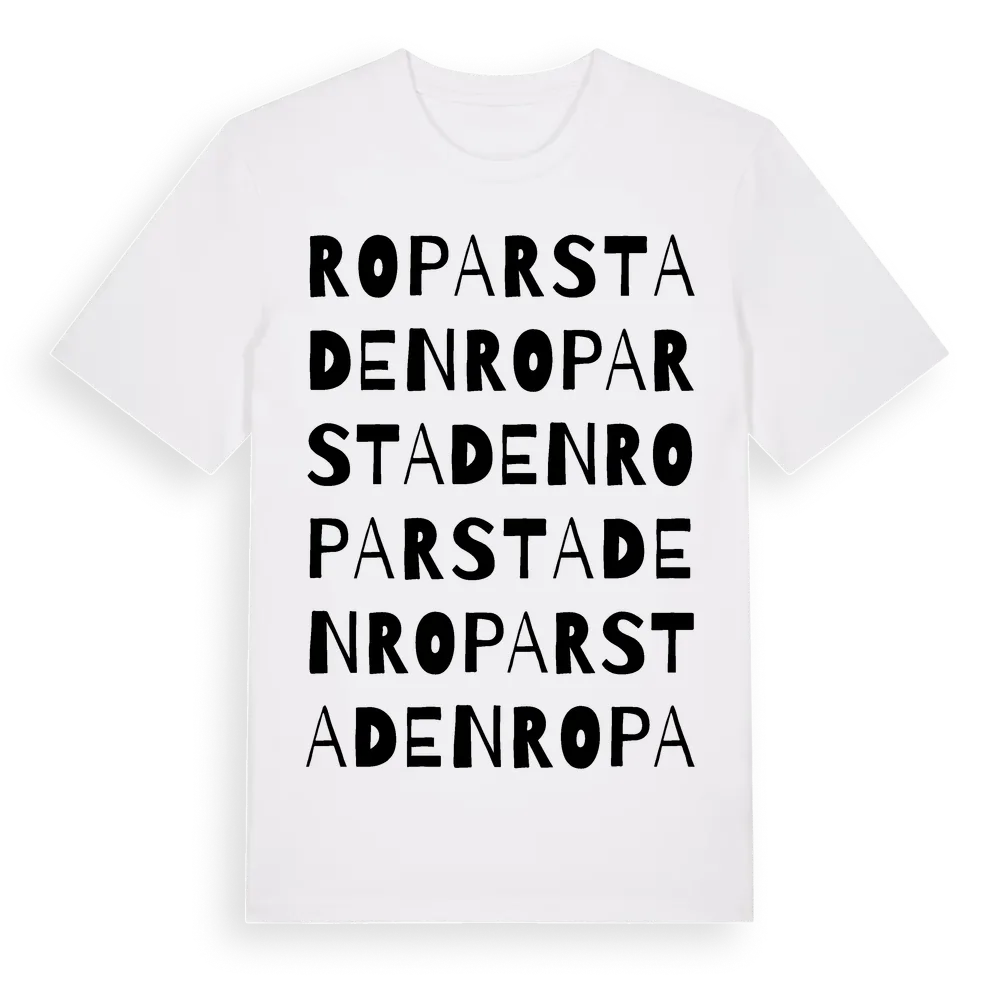 Roparstaden ordlek t-shirt är inspirerad av Roparstaden i Södermanlands län, Sverige. Tröjan är designad för dig som har en speciell koppling till platsen – oavsett om du bor här, har rötterna här eller bara älskar Roparstaden.