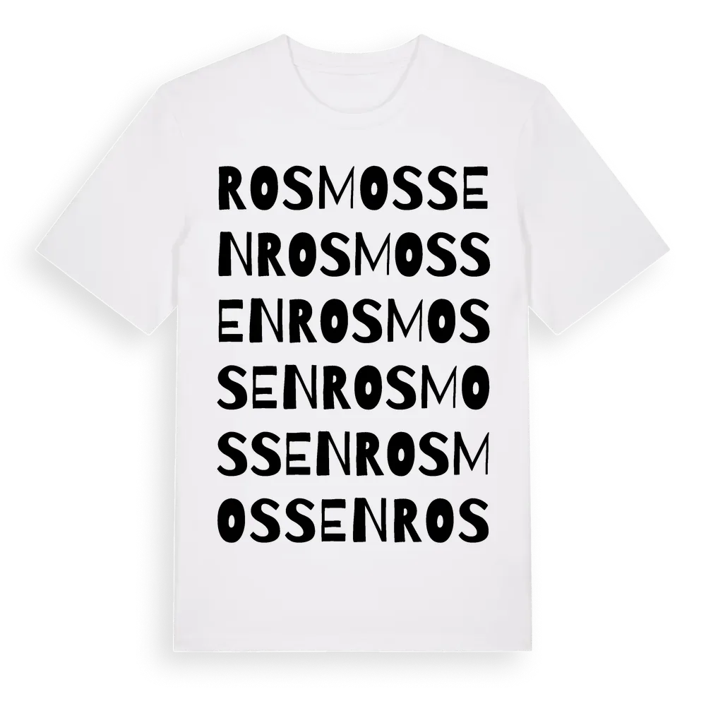 Rosmossen ordlek t-shirt är inspirerad av Rosmossen i Södermanlands län, Sverige. Tröjan är designad för dig som har en speciell koppling till platsen – oavsett om du bor här, har rötterna här eller bara älskar Rosmossen.
