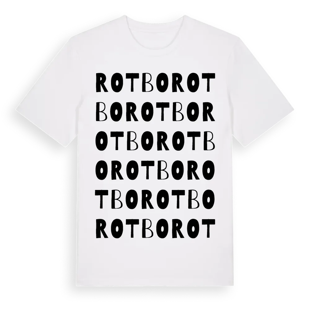 En ordlek byggd på Rotbos namn. Subtilt och klurig – ett motiv som bara de som verkligen känner platsen fullt ut förstår. Premium bomull, unisex – från Rotbo i Södermanlands län.