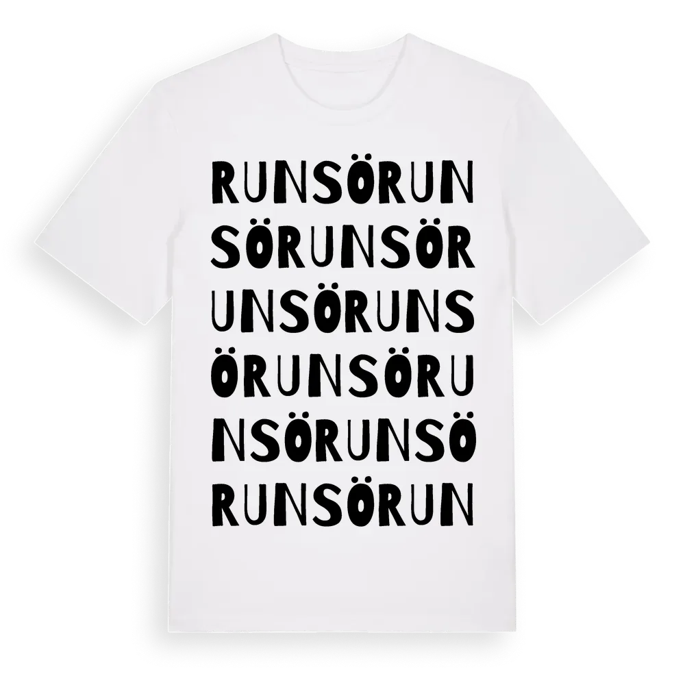En ordlek byggd på Runsös namn. Subtilt och klurig – ett motiv som bara de som verkligen känner platsen fullt ut förstår. Premium bomull, unisex – från Runsö i Södermanlands län.