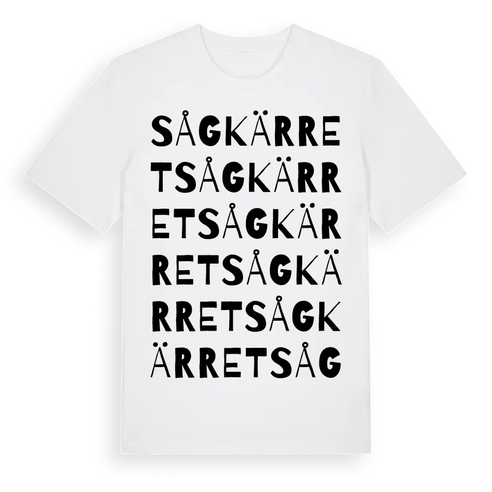 Sågkärret ordlek t-shirt är inspirerad av Sågkärret i Södermanlands län, Sverige. Tröjan är designad för dig som har en speciell koppling till platsen – oavsett om du bor här, har rötterna här eller bara älskar Sågkärret.