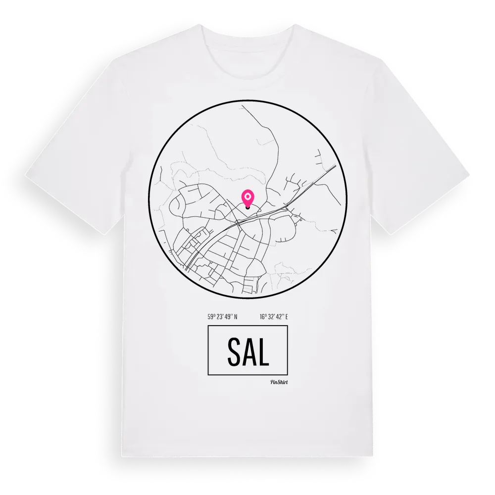 Sal t-shirt är inspirerad av stadsdelen Sal i Södermanlands län, Sverige. Tröjan är designad för dig som har en speciell koppling till platsen – oavsett om du bor här, har rötterna här eller bara älskar Sal.