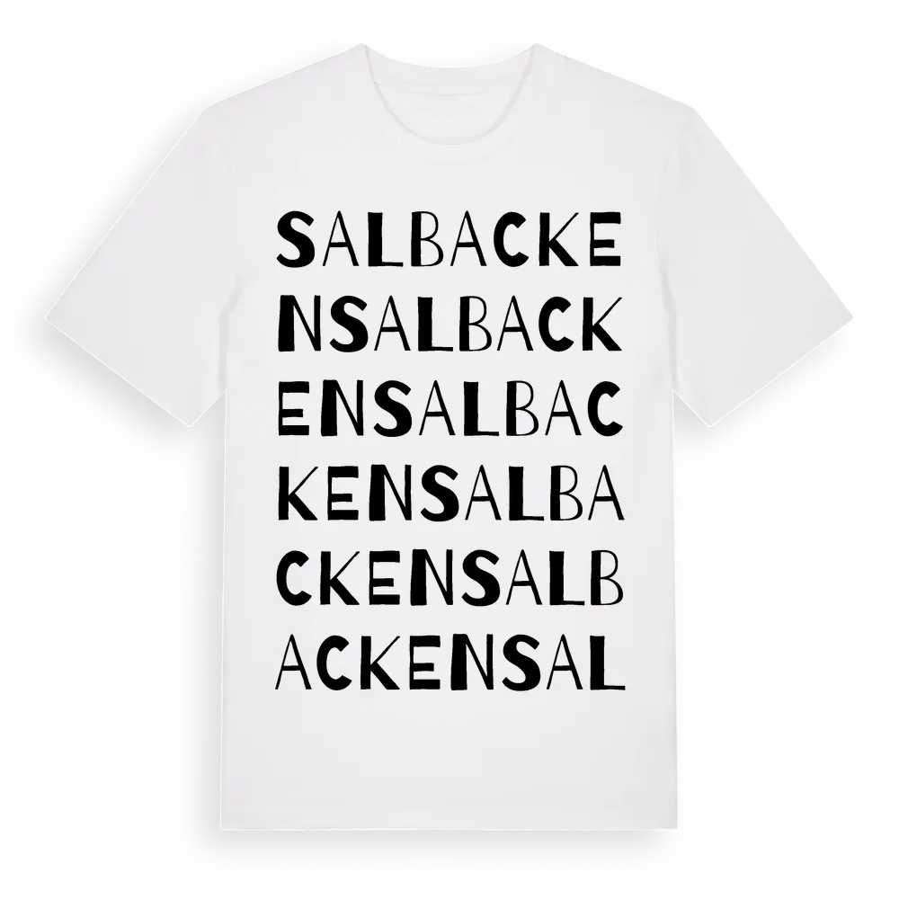 Salbacken ordlek t-shirt är inspirerad av byn Salbacken i Södermanlands län, Sverige. Tröjan är designad för dig som har en speciell koppling till platsen – oavsett om du bor här, har rötterna här eller bara älskar Salbacken.