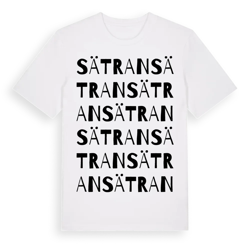 Sätran ordlek t-shirt är inspirerad av Sätran i Södermanlands län, Sverige. Tröjan är designad för dig som har en speciell koppling till platsen – oavsett om du bor här, har rötterna här eller bara älskar Sätran.