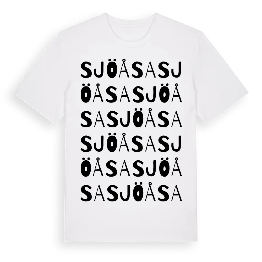 Sjöåsa ordlek t-shirt är inspirerad av Sjöåsa i Södermanlands län, Sverige. Tröjan är designad för dig som har en speciell koppling till platsen – oavsett om du bor här, har rötterna här eller bara älskar Sjöåsa.