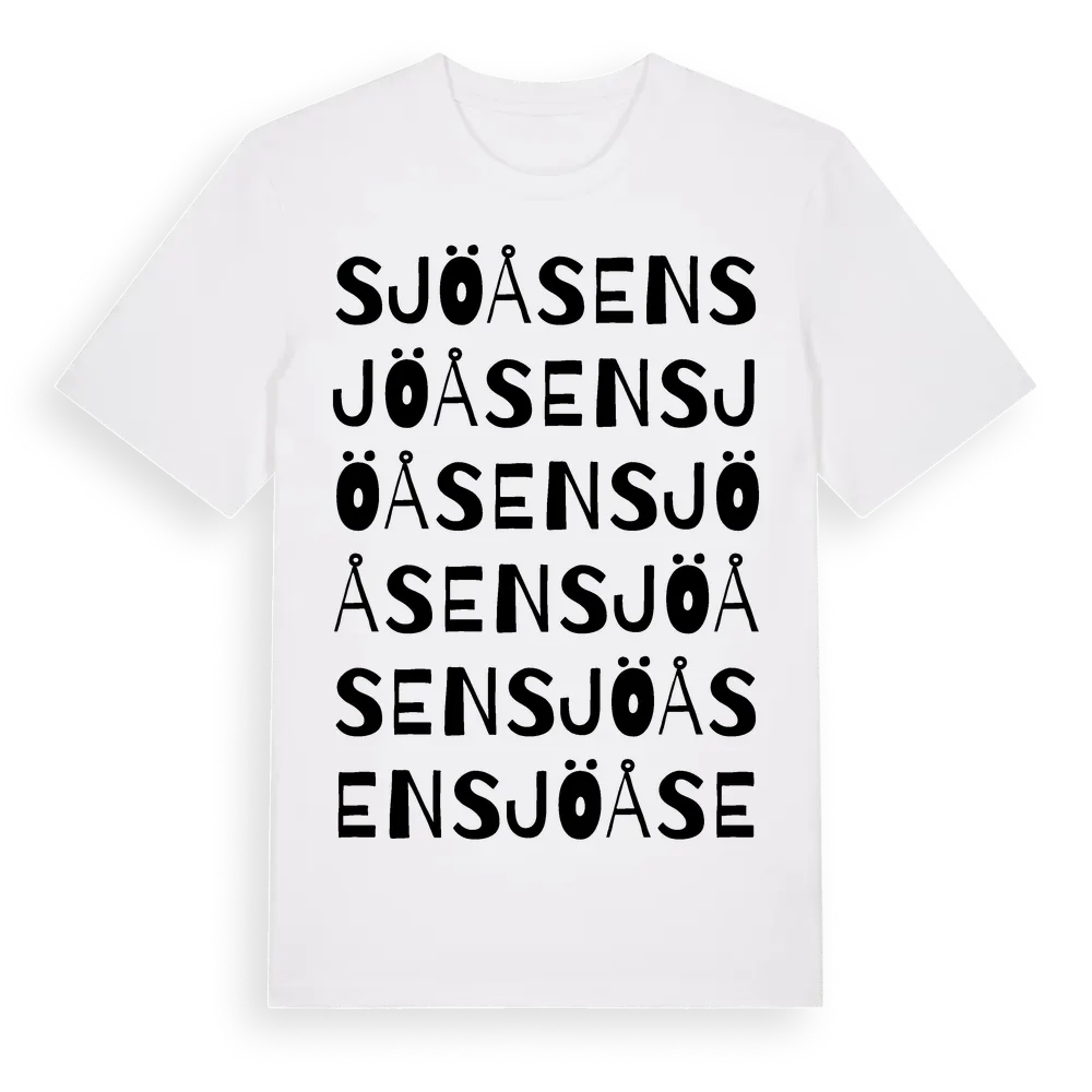 Sjöåsen ordlek t-shirt är inspirerad av Sjöåsen i Södermanlands län, Sverige. Tröjan är designad för dig som har en speciell koppling till platsen – oavsett om du bor här, har rötterna här eller bara älskar Sjöåsen.