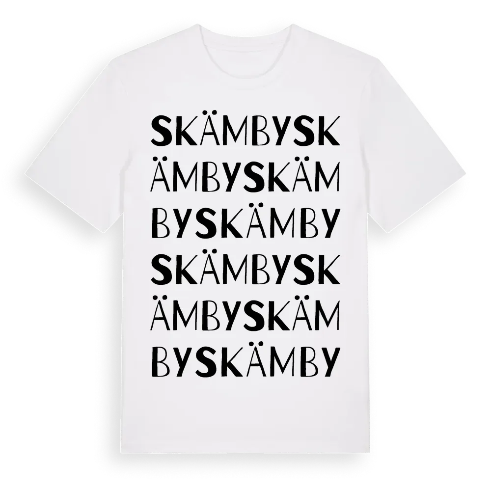 Skämby ordlek t-shirt är inspirerad av stadsdelen Skämby i Södermanlands län, Sverige. Tröjan är designad för dig som har en speciell koppling till platsen – oavsett om du bor här, har rötterna här eller bara älskar Skämby.