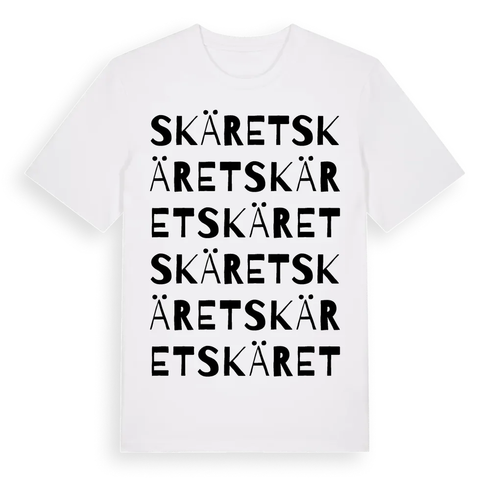 Skäret ordlek t-shirt är inspirerad av Skäret i Södermanlands län, Sverige. Tröjan är designad för dig som har en speciell koppling till platsen – oavsett om du bor här, har rötterna här eller bara älskar Skäret.