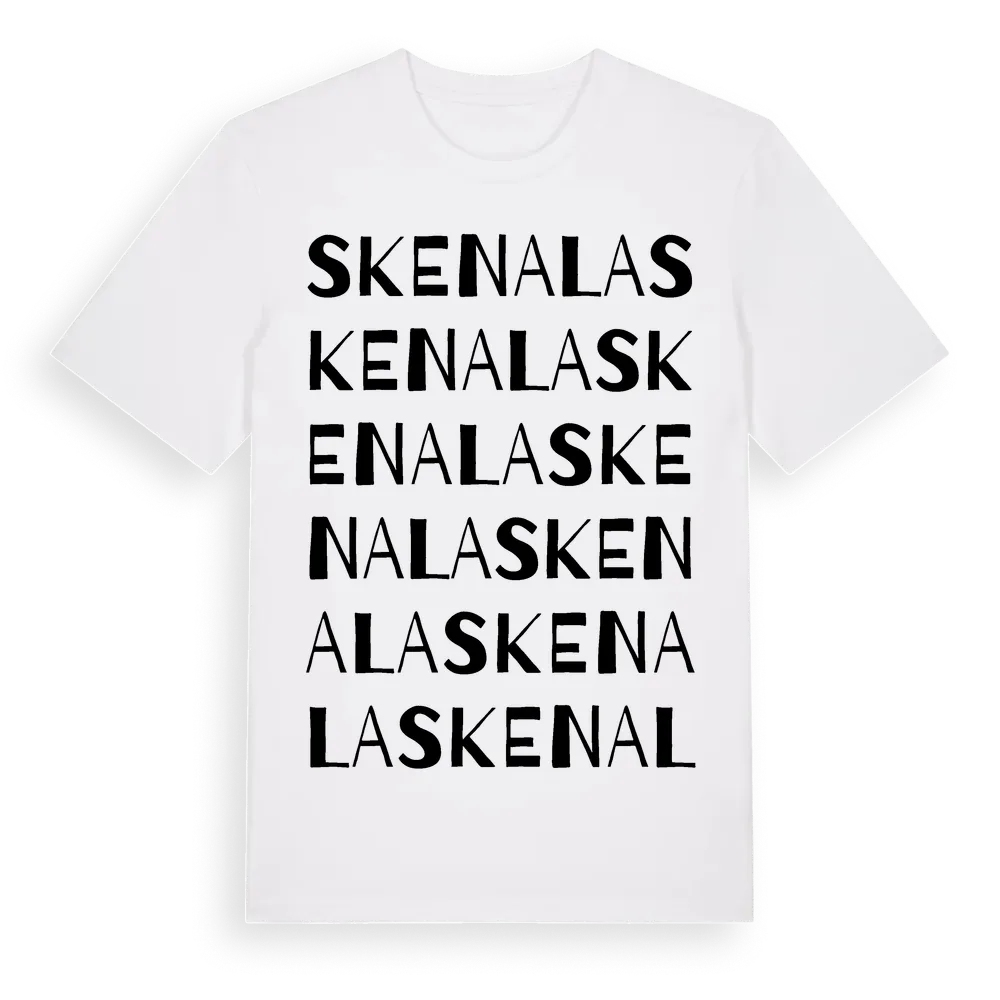 Skenala ordlek t-shirt är inspirerad av Skenala i Södermanlands län, Sverige. Tröjan är designad för dig som har en speciell koppling till platsen – oavsett om du bor här, har rötterna här eller bara älskar Skenala.