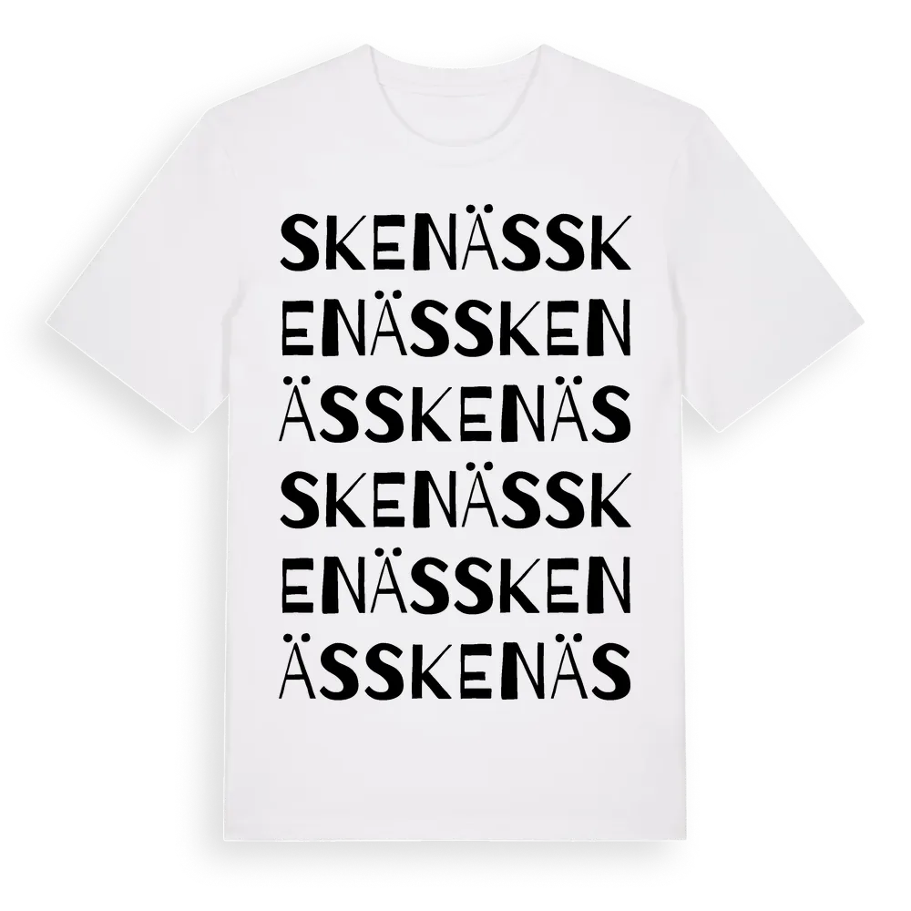 Skenäs ordlek t-shirt är inspirerad av Skenäs i Södermanlands län, Sverige. Tröjan är designad för dig som har en speciell koppling till platsen – oavsett om du bor här, har rötterna här eller bara älskar Skenäs.