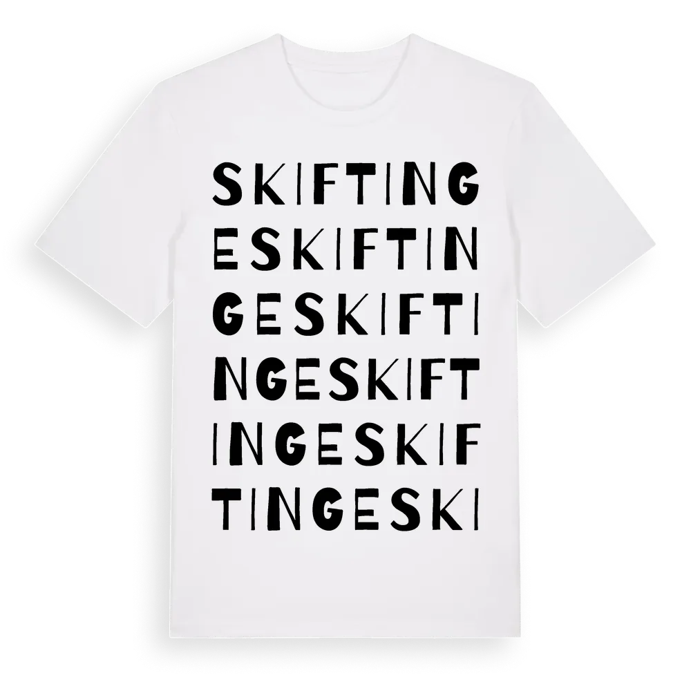En ordlek byggd på Skiftinges namn. Subtilt och klurig – ett motiv som bara de som verkligen känner platsen fullt ut förstår. Premium bomull, unisex – från stadsdelen Skiftinge i Södermanlands län.