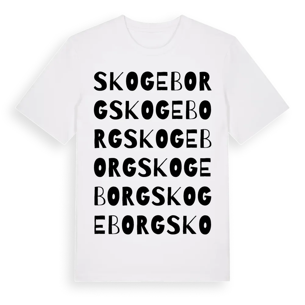 Skogeborg ordlek t-shirt är inspirerad av Skogeborg i Södermanlands län, Sverige. Tröjan är designad för dig som har en speciell koppling till platsen – oavsett om du bor här, har rötterna här eller bara älskar Skogeborg.