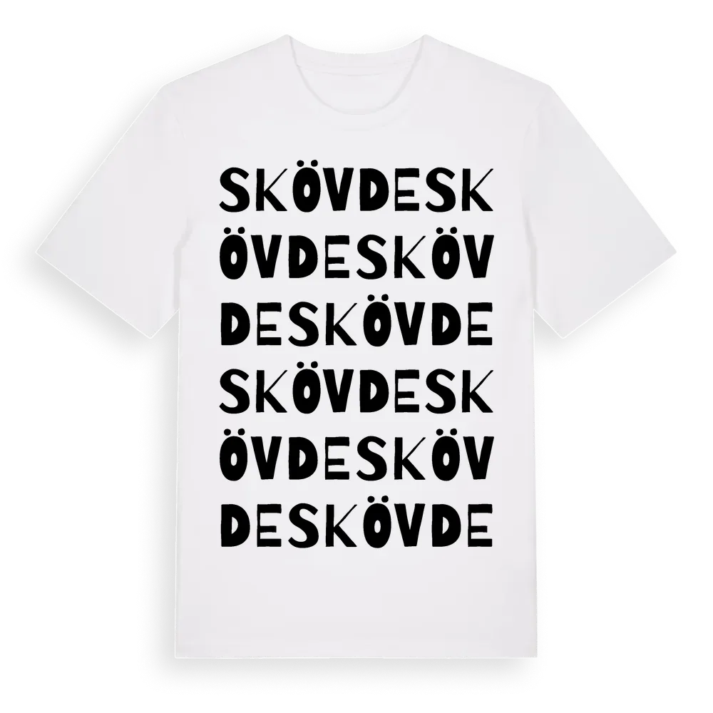 Skövde ordlek t-shirt är inspirerad av Skövde i Södermanlands län, Sverige. Tröjan är designad för dig som har en speciell koppling till platsen – oavsett om du bor här, har rötterna här eller bara älskar Skövde.