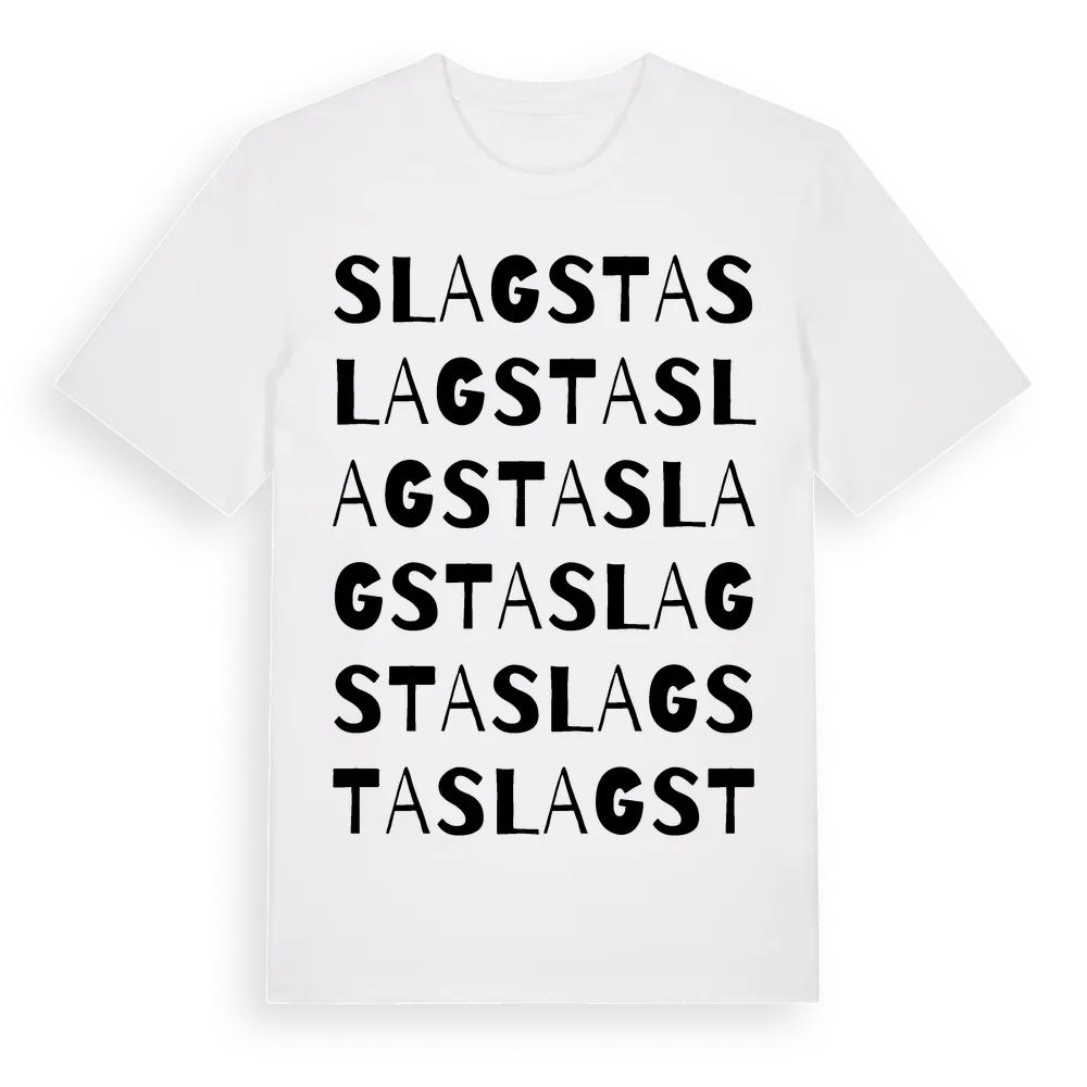Slagsta ordlek t-shirt är inspirerad av stadsdelen Slagsta i Södermanlands län, Sverige. Tröjan är designad för dig som har en speciell koppling till platsen – oavsett om du bor här, har rötterna här eller bara älskar Slagsta.